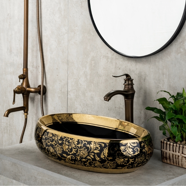 - Thiết kế: Dáng bầu dục, đặt trực tiếp lên bàn đá