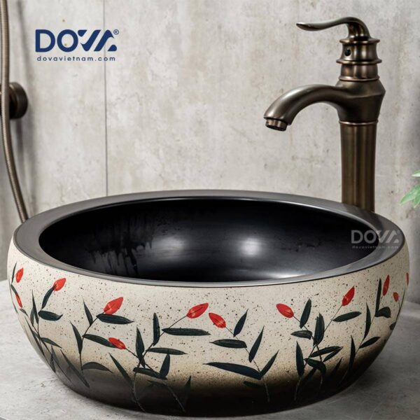 - Thành phần vật liệu: Cao lanh, đất sét trắng tinh khiết cao. Chậu rửa bằng gốm sứ sản xuất thủ công, chậu sứ mỹ thuật, có thể dùng như lavabo sứ để nổi trên mặt bàn, chậu rửa mặt đẹp, gốm sứ, màu sắc, hoa văn tao nhã.